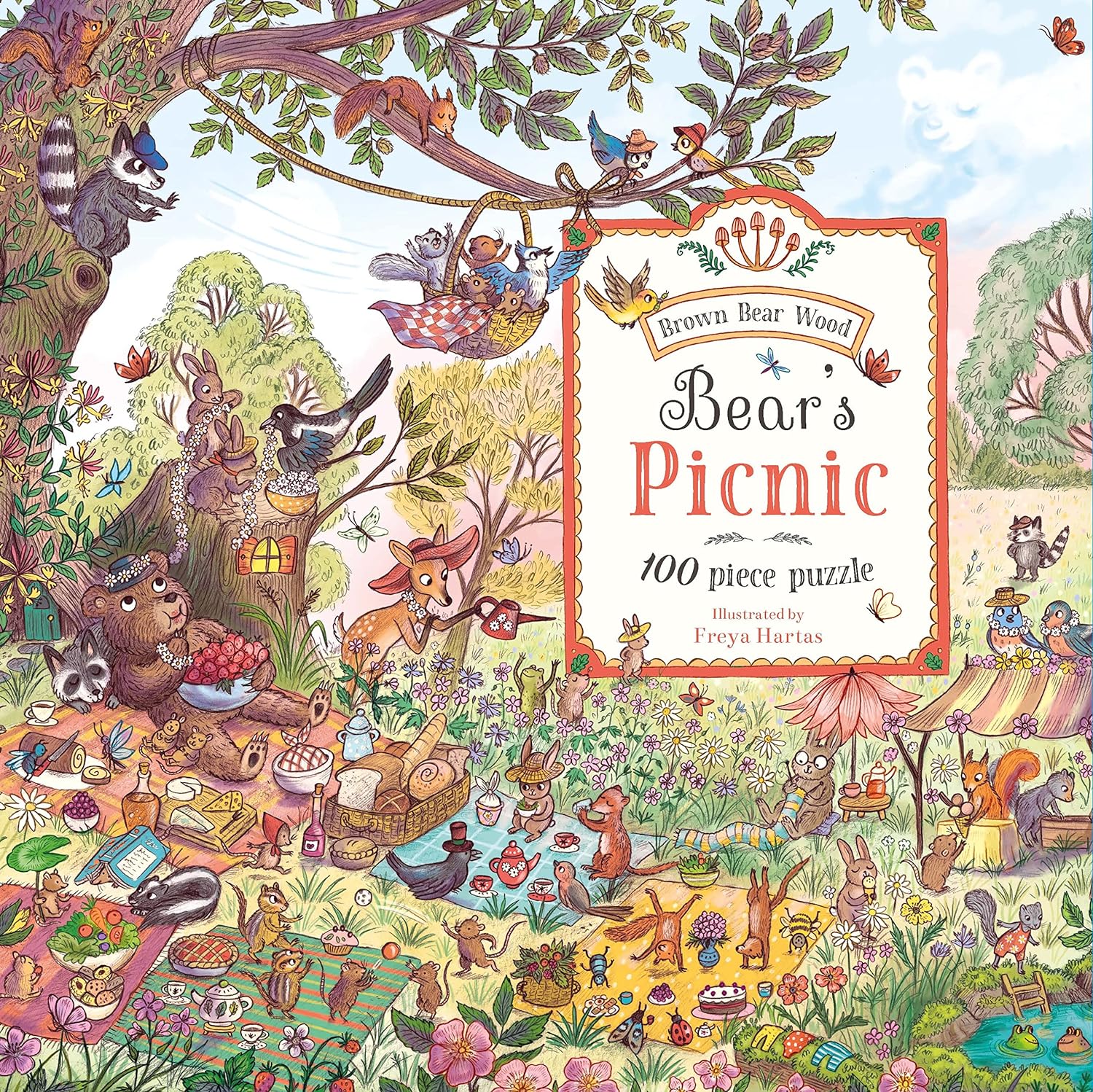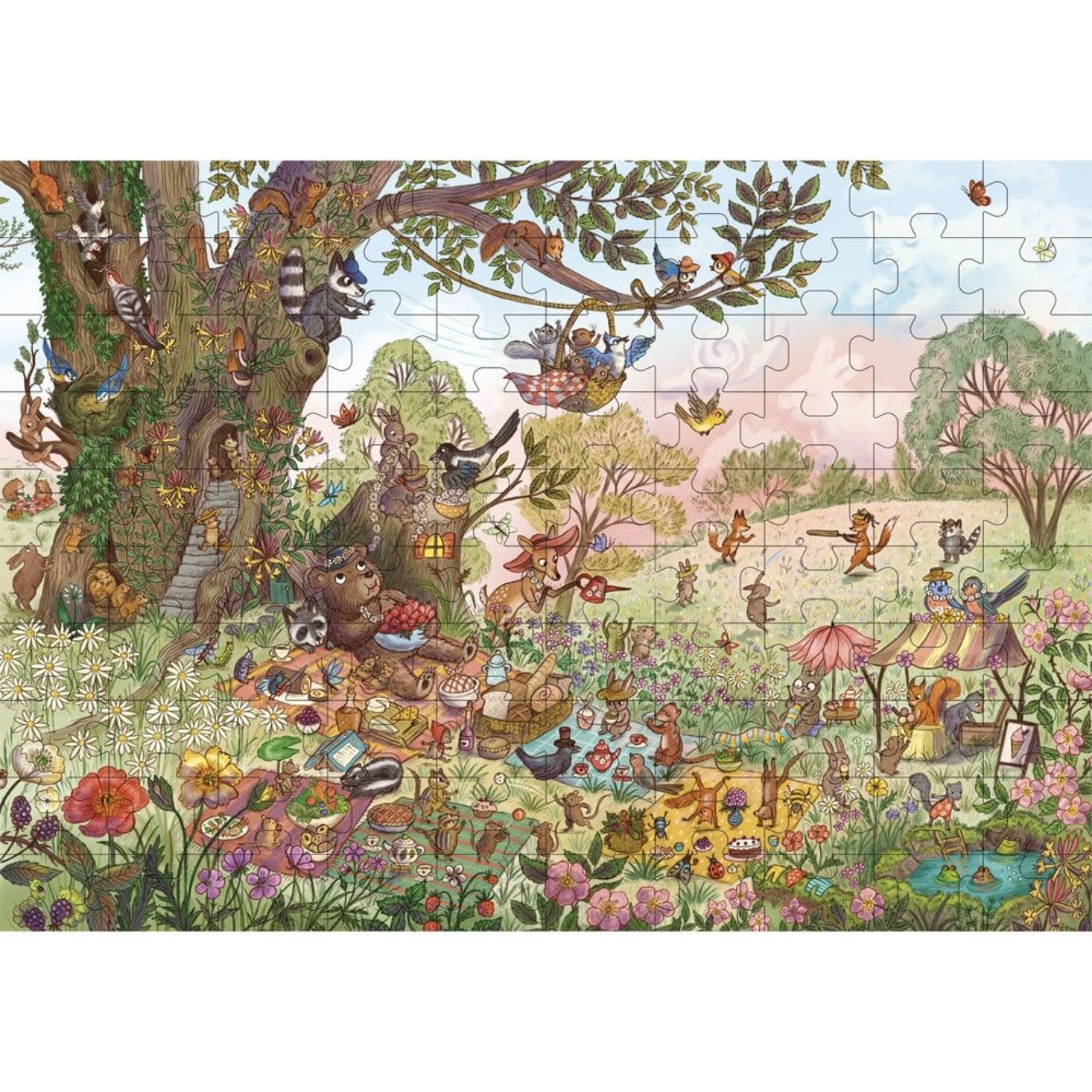 If you go down to the woods today you'll find a delightful scene full of woodland creatures in this exquisitely detailed 100-piece puzzle celebrating the teddy bears' picnic.