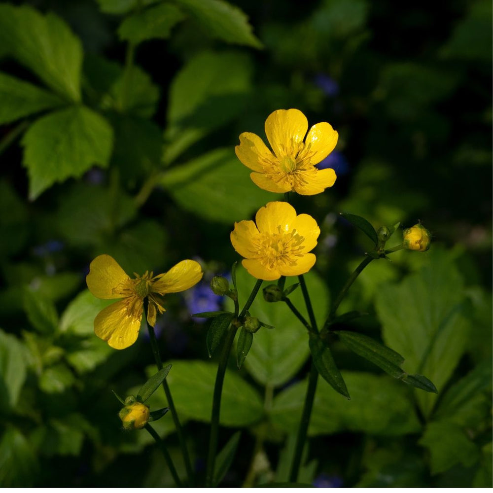 A cheerful, low-growing perennial wildflower with glossy, golden-yellow flowers that appear from late March to June. Its early blooms provide a valuable nectar source for bees and other pollinators in spring, helping support wildlife at a critical time of year. The deeply divided foliage and slightly nodding flower buds add texture and charm to meadows and grasslands.