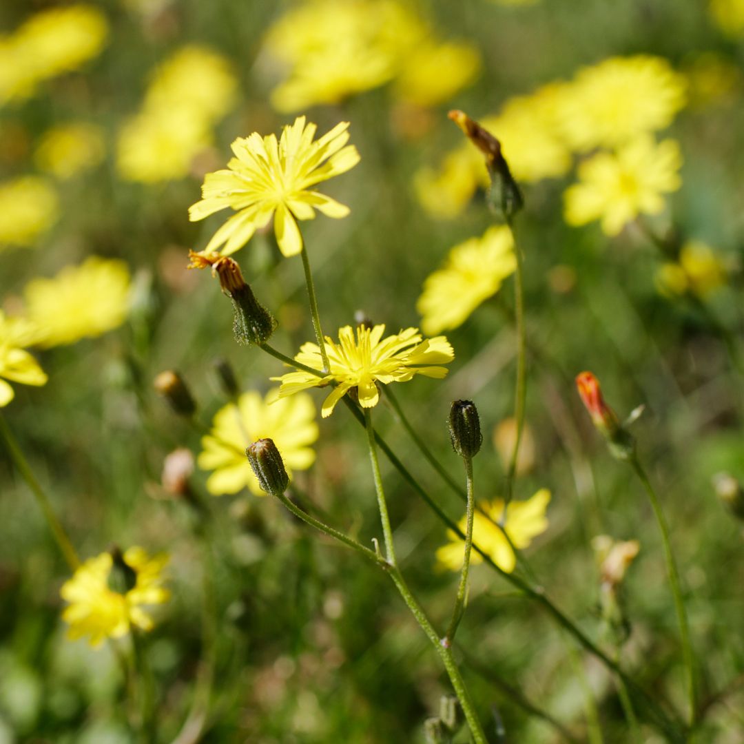 A low-growing perennial wildflower with soft, downy foliage and clusters of cheerful yellow flower heads from May to September. Mouse-ear hawkweed thrives in poor, dry soils where few other species can establish, making it an excellent choice for green roofs, rock gardens, and dry grasslands. Its nectar-rich blooms support bees, butterflies, and other pollinators throughout the summer.