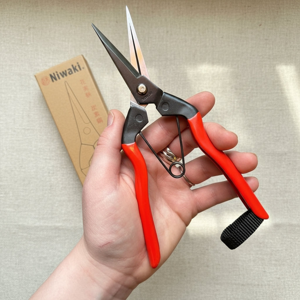 Lightweight and perfectly balanced, the ergonomic handles reduce fatigue, making them ideal for prolonged use in the garden, greenhouse, or flower studio. Trusted by professional gardeners and florists alike, Niwaki pruning snips embody Japanese craftsmanship — combining strength, precision, and reliability for everyday horticultural tasks.