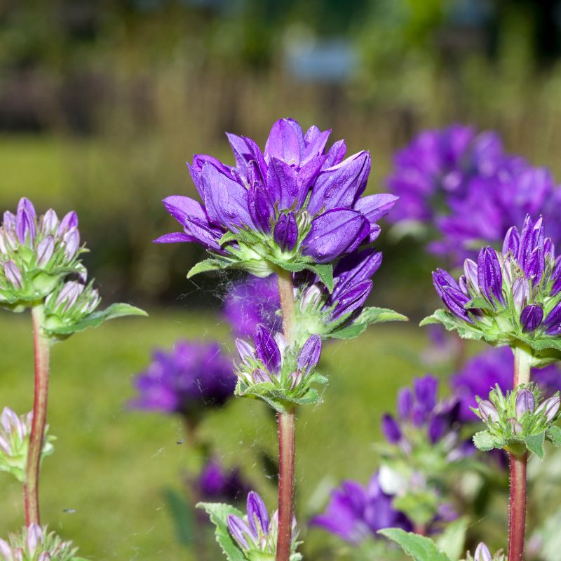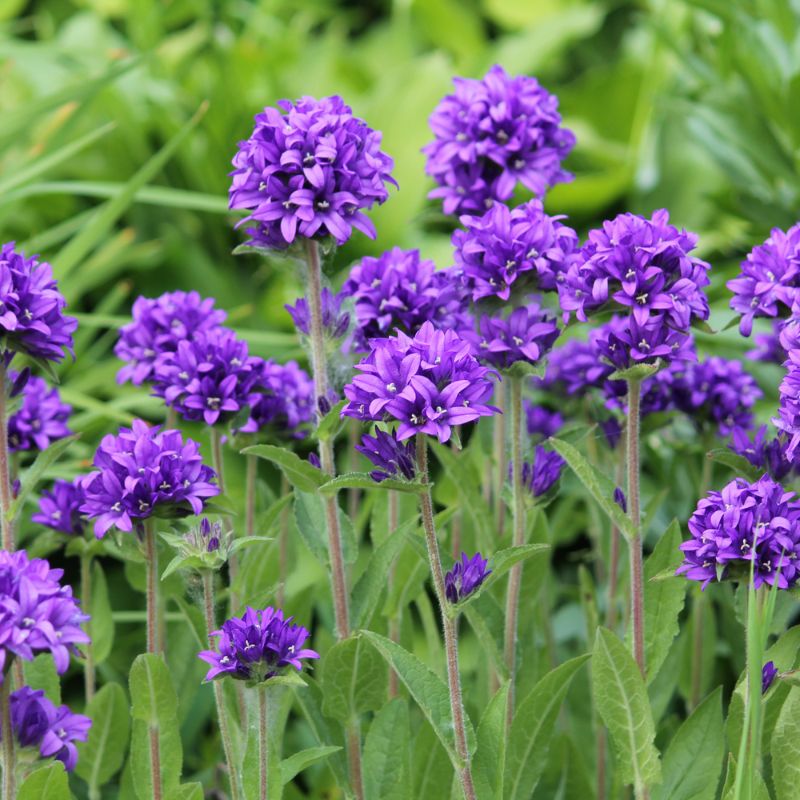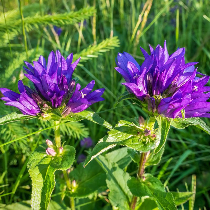 A perennial native wildflower with clusters of attractive violet bell-shaped blooms from June to September, clustered bellflower thrives in a sunny site on light dry grassland and is well-suited to chalk and limestone soils. Ideal plants for cottage and informal gardens, rock gardens, and for naturalising in woodland and wildflower meadows, clustered bellflowers can be found in the wild in forests or dry grasslands, open woodland and along the margins of roads and trails.