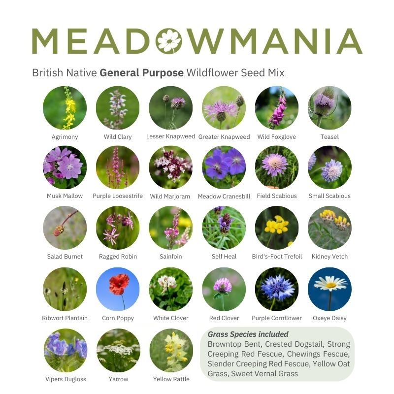 Suitable for all soil types and quick to establish with the longest flowering season, our Native British General Purpose Wildflower Meadow mixture makes it easy for you to choose the right native mix for your meadow.